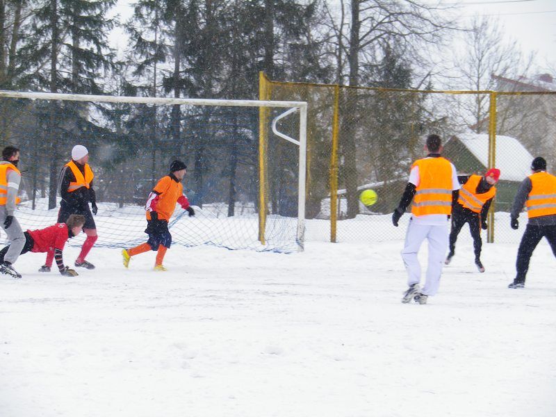Nors sekmadienį, vasario 19-ąją, dangus gana rimtai grasino užgriūti ant žemės sniegu ir pūgomis, tačiau futbolo žaidėjų ir šios sporto šakos mylėtojų tai neišgąsdino. Stakliškiečiai ir jų kaimynai iš Butrimonių, Jiezno ir Kruonio, nepaisydami stipraus vėjo ir pustymo, gainiojo kamuolį mokyklos stadione, savo įkarščiu uždegdami žiūrovus ir stebindami į šventę besirenkančius praeivius. Iš tiesų, futbolininkams teko demonstruoti ne tik gerus žaidimo įgūdžius, bet ir pasitelkti slydimo, čiuožimo bei akrobatikos elementus, o jų efektingi griuvinėjimai kėlė ne juoką, o susižavėjimą. Ne vienas griūdamas ir sniego pilną burną prisisemdavo, o kiek jo patekdavo už juosmens – tik patys žaidėjai ir žinojo, bet vargu ar ką jautė, iš visų jėgų siekdami pergalės savo komandai. Stakliškiečiai, kaip šios šventės šeimininkai, pasielgė kukliai ir iškovojo trečiąją vietą, antroji atiteko jiezniškiams, jau genuose nešiojantiems aistrą futbolui, o pirmąją vietą išplėšė kaimynai butrimoniškiai, džiuginę žiūrovus darniu žaidimu ir ištvermingumu. Šiuos trijų prizinių vietų laimėtojus Stakliškių sporto klubas apdovanojo atminimo taurėmis, dovanomis ir stadiono nuvalymu prie turnyro surengimo prisidėjo ir seniūnija, o bendruomenės narės visus vaišino gardžia koše ir karšta arbata. Kas po apdovanojimų ceremonijos neskubėjo namo, neapsiriko – jų laukė nuotaikinga ir smagi Užgavėnių šventė.