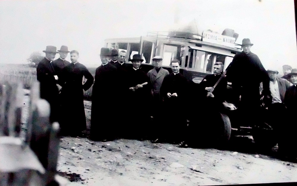 Kitoje nuotraukoje matome į Jiezną keleiviniu 1935 m. rudenį atvykusius Kauno vienuolius-marijonus. Manome, kad krašto žmonės savo nuotraukų kolekcijose suras ne vieną nuotrauką, apibūdinančią keleivinio transporto raidą Jiezne. Mes, suradę naujų dokumentų, šią temą galėsime pratęsti.