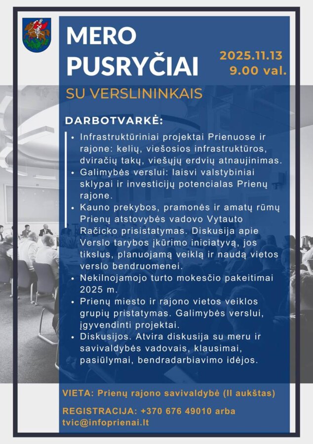 Naujienos Klaida ir praleistas tritaškis virto pralaimėjimu vienu tašku • 10 29, 2025 • No Comments „Lidl“ atėjimas į Prienus – ne už kalnų • 10 29, 2025 • No Comments RKL „A“ divizionas „Tikodenta“ – VDU (fotoreportažas) • 10 29, 2025 • No Comments Pianistė Ieva Dūdaitė pradėjo didžiausią solinį turą: aplankys ir Birštoną • 10 29, 2025 • No Comments Ekonomika „Lidl“ atėjimas į Prienus – ne už kalnų • 10 29, 2025 • No Comments „Pievos boutique“ – tai vieta, kur laikas sulėtėja • 10 28, 2025 • No Comments Daugiau Politika Susitikimas su žemės ūkio ministru Prienuose: daug skaičių, apibendrinimai, aiški finansų stoka ir kova dėl išgyvenimo • 10 25, 2025 • No Comments Birštono savivaldybės merės pusryčiai su Birštono savivaldybės verslo atstovais (Fotoreportažas) • 10 22, 2025 • No Comments Daugiau Futbolas Paskutinėse čempionato rungtynėse – FK „Nemunas“ komandos dominavimas • 10 27, 2025 • No Comments Futbolo drama: paskutinę minutę praleistas įvartis nulėmė rungtynių baigtį • 10 26, 2025 • No Comments Daugiau Krepšinis Klaida ir praleistas tritaškis virto pralaimėjimu vienu tašku • 10 29, 2025 • No Comments RKL „A“ divizionas „Tikodenta“ – VDU (fotoreportažas) • 10 29, 2025 • No Comments Daugiau Sportas „Lietuvos taurė’ 2025“ – Emos Valatkaitės triumfas • 10 27, 2025 • No Comments Atviras kultūrizmo ir fitneso čempionatas’ 2025 Birštone (Fotoakimirkos) • 10 25, 2025 • No Comments Daugiau Krašto istorija Birštono istorinio banginuko beieškant. Ekskursija su Simonu Matulevičiumi (Fotoakimirkos) • 10 26, 2025 • No Comments Respublikinis romansų vakaras „Ilgesio dainos“ (Fotoakimirkos) • 10 25, 2025 • No Comments Daugiau