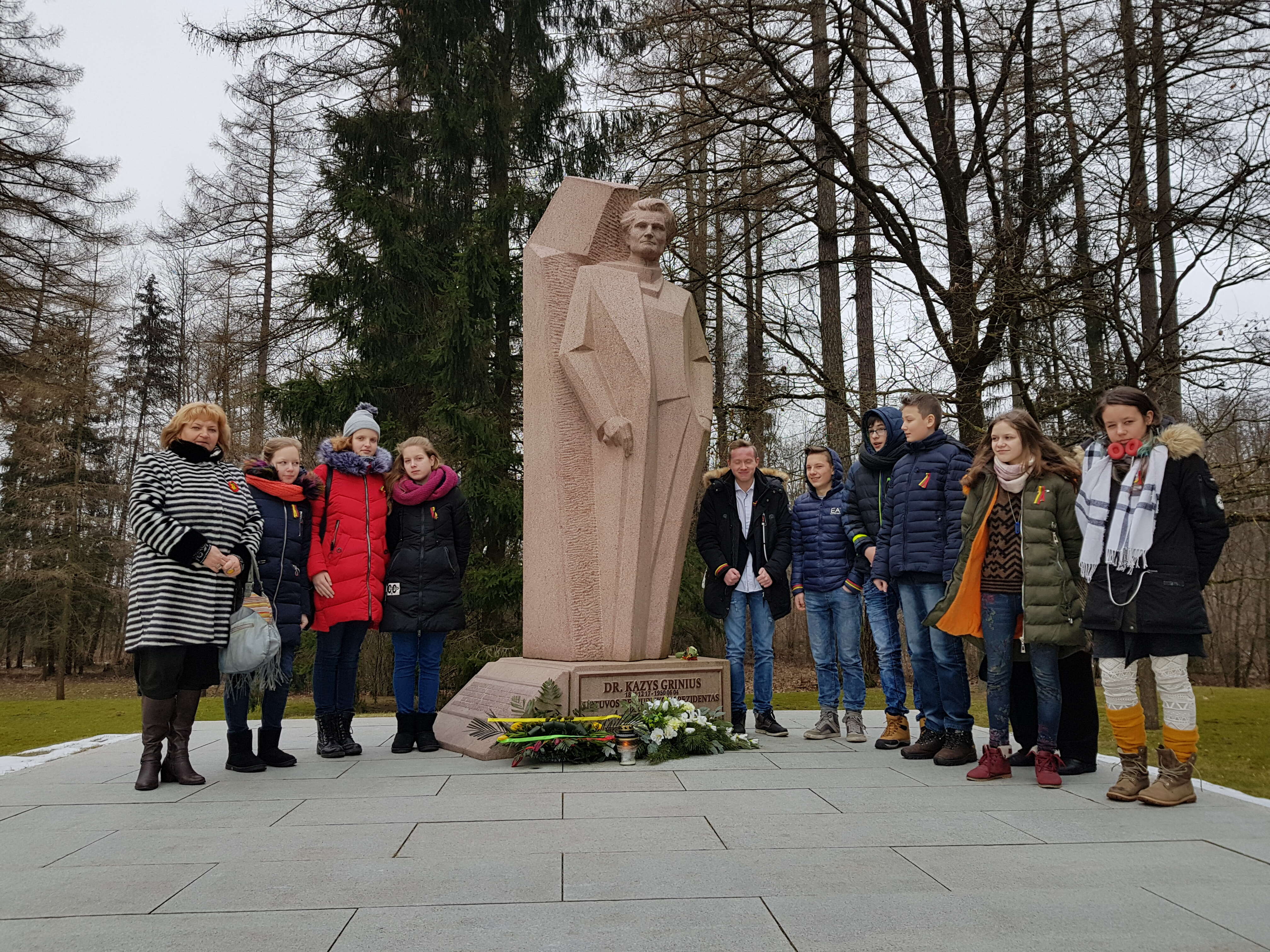 Grįždami iš Šunskų kapinių, sustojome pagerbti ir rožės žiedą padėjome ant Lietuvos Prezidento, dr. Kazio Griniaus (1866– 1950) kapo Selemo Būdos kaime. Kaip žinome, Kazys Grinius – Lietuvos politikas, visuomenės ir kultūros veikėjas, humanistas, vienas pirmųjų Lietuvos demokratų, varpininkas, gydytojas, švietėjas, visuomenės sveikatos aktyvistas, publicistas, knygnešys. Steigiamojo Seimo komiteto, rengusio Lietuvos Konstituciją, pirmininkas, Steigiamojo, I, II ir III Seimų narys. Šeštasis Lietuvos premjeras (1920 m. lapkričio 19 d. – 1922 m. sausio 18 d.), pirmasis premjeras, vadovavęs parlamentinei Lietuvos vyriausybei. Trečiasis Lietuvos Respublikos Prezidentas (1926 m. birželio 7 d. – gruodžio 17 d.). Paskutinis demokratiškai išrinktas tarpukario Lietuvos Prezidentas. Vienas iš Demokratų partijos bei Lietuvos valstiečių liaudininkų sąjungos steigėjų ir lyderių. Po mirties apdovanotas Žūvančiųjų gelbėjimo kryžiumi už žydų kilmės Lietuvos žmonių gelbėjimą per Holokaustą.