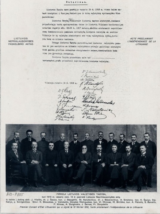 Vasario 16-oji – Lietuvos aukščiausia valstybingumo viršūnė. Be jos nebūtų buvę ir Kovo 11-osios su mūsų dabartimi. Žvelgiu į 1918 m. Nepriklausomybės akto signatarų veidus visiems žinomame vaizde su akto kopijos faksimile. Širdyje – šilta dvasios banga, prote – viena beklaidžiojanti mintis: „Taip, tikrai nėra nepakeičiamų žmonių, bet yra nepakeičiamos asmenybės. Jos gimsta, subręsta, išsikristalizuoja labai retai, kartais tik per šimtmetį kartą. Tarp dvasios ir minties galiūnų – 8 teisininkai, 4 dvasiškiai, 2 agronomai, 2 verslininkai, 1 daktaras, 1 inžinierius, kiti – tarnautojai