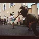Būtent stende, kaip vizitinėje kortelėje, matomas parodos autorius – žinomas fotografas, kaunietis fotomenininkas Algimantas Barzdžius, daug kam pažįstamas kaip nuolatinis kiokušin karatė varžybų fotografas, su neišskiriamu draugu fotoaparatu gaudantis akimirkas būtent su jaunu ir perspektyviu parkūro virtuozu Titu Valioniu.