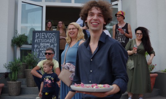 Gastrobaro „Pievos“ atidarymas vyko su trenksmu. Jau iš tolo girdėjosi „The Honkin’ Dudes Brass Band“ ritmas. Čia pat puikavosi Martyno Gaubo daug prieštaringų pasisakymų sulaukusi „Lietuvaitė pliaže“ skulptūra ir daug jaunimo, čia pat su susirinkusiais atradusio bendras pokalbio temas.