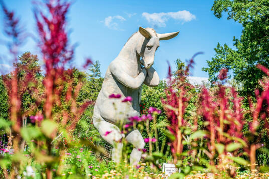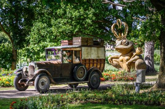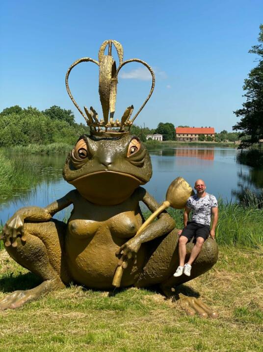 Tai ne pirmas darbas, kuris sau vietą surado Pakruojo dvare. Dvare lankytojus pasitinka įspūdingo ūgio skulptūra „Asilas“, paslaptinga ir pritrenkianti „Varlė“ ir „Įsimylėjėlių“ pora, kuri slepiasi tarp gėlių.