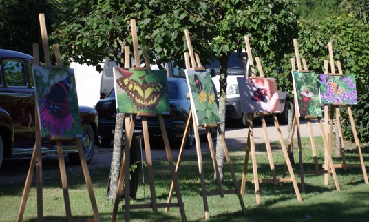 Kas mus supa? Kas yra nuostabu ir trumpalaikiška? Ogi drugeliai. Tad išeksponuotose fotografijose pagautos akimirkos su įvairiaspalviais drugeliais traukė juos „pačiupinėti“ akimis. O kitoje parapijos parko pusėje buvo galima pasigrožėti nagingų pakuoniškių iš įvairių medžiagų, darželio, lauko gėlių pagamintais drugeliais. Visa tai magiškai žavėjo, daugelis net skubėjo įsiamžinti prie jų.