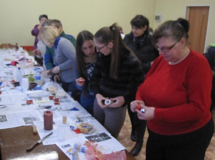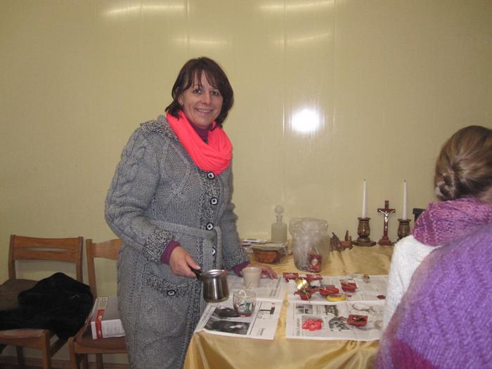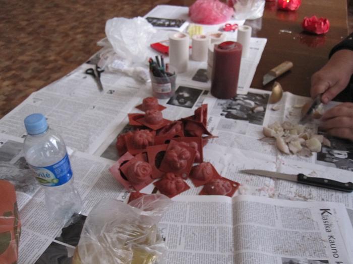 Foto. Žvakių liejimo pamoka Vėžionių bendruomenėje (D. Mozūrienės nuotr.)