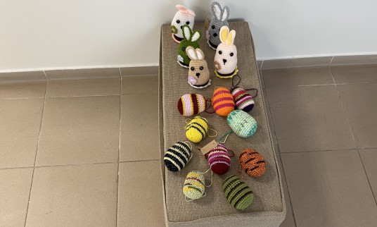 Besižvalgant iškart į akis krito virbalais megztos staltiesės, po to kabliuku nerti žaislai. Net nusišypsojau, kai pamačiau nuostabius ir mielus, su meile pagamintus žaislus, kurie taikiai sutūpę pintame lopšyje laukia savo pirkėjų, o gal net savo šeimininkų. Tolėliau dar gražiau. Eglės vainikai, kurie įtiktų net ir pačiam reikliausiam ir tikiu, kad kitokių nebebus!..