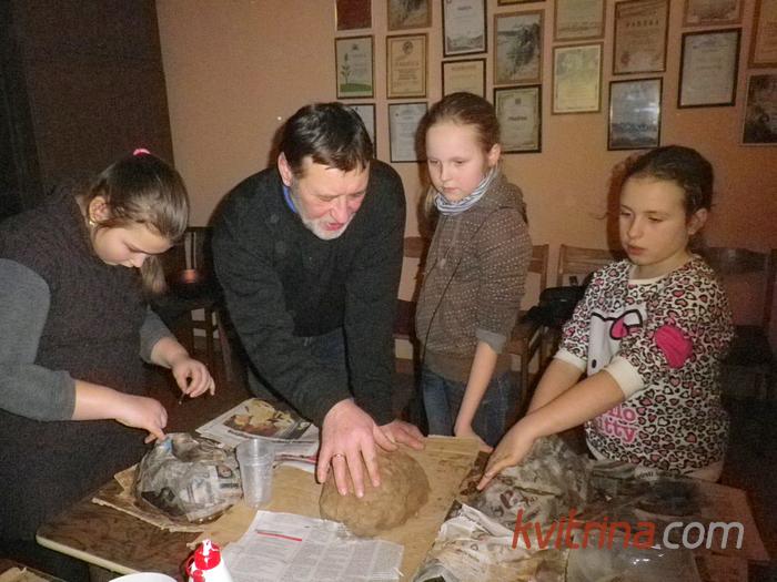 Jiezno KLC direktorė D. Vertinskienė pasakoja, jog pernai į Užgavėnės atėjo ypač įdomiai pasipuošusi Švenčionių šeima. To pakako, kad gimtų idėja išmokti patiems ir kitus išmokyti pasidaryti štai tokių originalių kaukių. Padėti mielai sutiko skulptorius Gvidas Švenčionis, noriai dalyvaujantis ir saviveikloje, dainuojantis, vaidinantis, kuriantis dekoracijas. Štai ir susirinko didelė grupė suaugusiųjų ir vaikų, sutelpančių į nedidelį kabinetą ir labai smarkiai dirbančių.