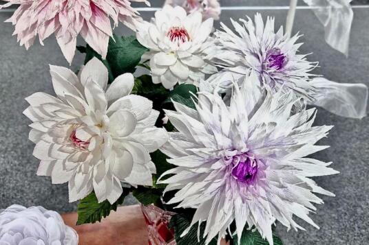 Įsisukus popierinių gėlių gamybai, prieš metus ji pradėjo gaminti gėles iš organzos medžiagos. Tai labai subtilus ir daug dėmesio reikalaujantis darbas. Juk reikia ne tik trapios organzos medžiagos, bet ir karoliukų, ir dar daugiau medžiagų. Savo lengvumu, švelnumu, pasteliniu spalvų gaivumu gėlės tiesiog švyti, verčia susimąstyti apie trapumą ir perregimumą. Tai nuostabūs darbai, kurių nori įsigyti jau ne tik Lietuvoje, bet ir už šalies ribų esantys asmenys, įmonės. „Į užsienį norėtųsi nuvežti pačiai, nes išimtos iš įpakavimo gėlės „reikalauja“ švelnaus rankų darbo žiedlapių atstatymui, bet kaip yra, taip yra…“, – sako Jurgita.