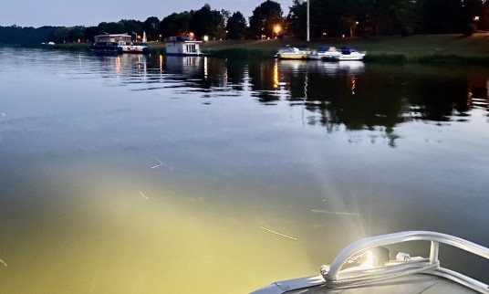 Linas uždega nedidukę lempelę palubėje ir laivelis pavirsta nediduku mūsų prieglobsčiu nuo nakties. Kelionė jau į pabaigą, valanda praskriejo nenumaldomai. Mūsų kapitonas pasakoja apie savo darbo kasdienybę, ateities planus. Ypač maloniai nudžiugina jo pranešta naujiena, kad į savo pontoninį laivelį jau priima ir neįgaliuosius su vežimėliais, laukia šioks toks patobulinimas ir tai daryti bus dar patogiau. Ir matai, kad šis žmogus dirba ne dėl kuo didesnio pelno, o dėl to, kad myli Nemuną, neatsigroži juo ir nori pasidalinti savo matomu grožiu su kitais, ypač tais, kuriems gyvenimas pašykšti laimės.
