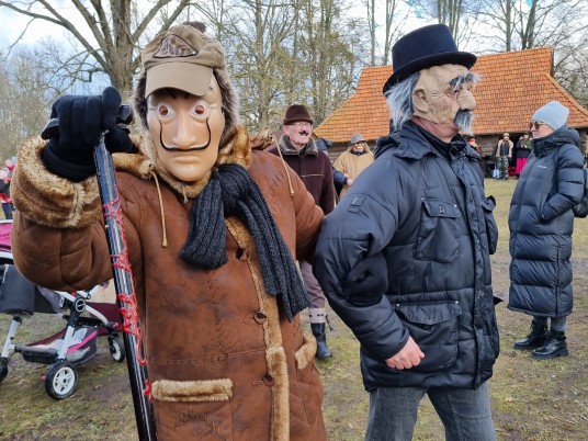 Puikiai tai padaryta vasario 19 d. Skriaudžių buities muziejaus prieigose. Kiemelį užplūdo liaudiško humoro grožiu ir kūrybingumu žavinčios Užgavėnių karnavalo linksmybės.