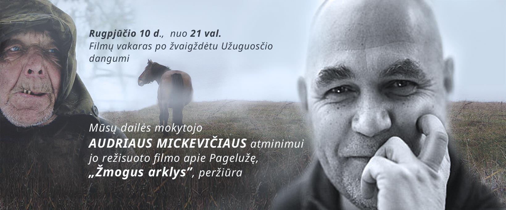 Savaitgalį, rugpjūčio 10-12 dienomis, Užuguostis taps traukos centru norintiems gerai ir turiningai praleisti vasaros laiką šiame kaime. Jau tapo graži tradicija stovyklos metu Užuguostyje žiūrėti filmus pripučiamame ekrane. Rugpjūčio 10 d. kino vakaras (pradžia nuo 20 val.) Užuguostyje bus itin prasmingas – menininko karjeros pradžioje Užuguostyje dailės mokytoju dirbusio režisieriaus a.a. Audriaus Mickevičiaus atminimui bus žiūrimas jo prieš dešimt metų sukurtas filmas „Žmogus arklys“. Šis filmas yra apie žemdirbį Joną ir jo arklį, tai intymus pasakojimas apie egzistencinį žmogaus ir gyvulio ryšį, apie vienatvę ir kasdienines pastangas išgyventi. Filmo režisierius ir Jonas buvo Užuguosčio kaimo kaimynai.