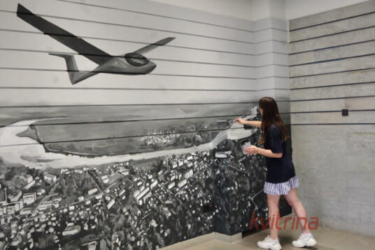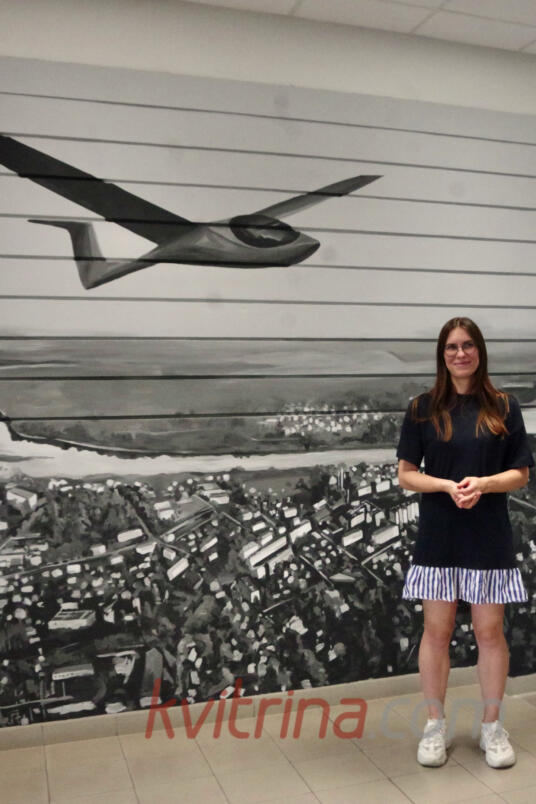 Rugpjūčio 5-7 dienomis Prienų rajono savivaldybės administracijos fojė darbavosi meno kūrėja Laura Slavinskaitė, kuri tapė freską, atspindinčią Prienų miesto išskirtinumą – virš miesto sklandantį sklandytuvą. Susipažinau su kūrėja, kuri papasakojo, jog dėsto Kauno kolegijos Menų ir ugdymo fakultete ir, Kauno kolegijos vadovybės paprašyta, pradėjo tapyti freską, kad įgyvendintų Prienų rajono savivaldybės sumanymą – fojė papuošti reprezentacine sienele.