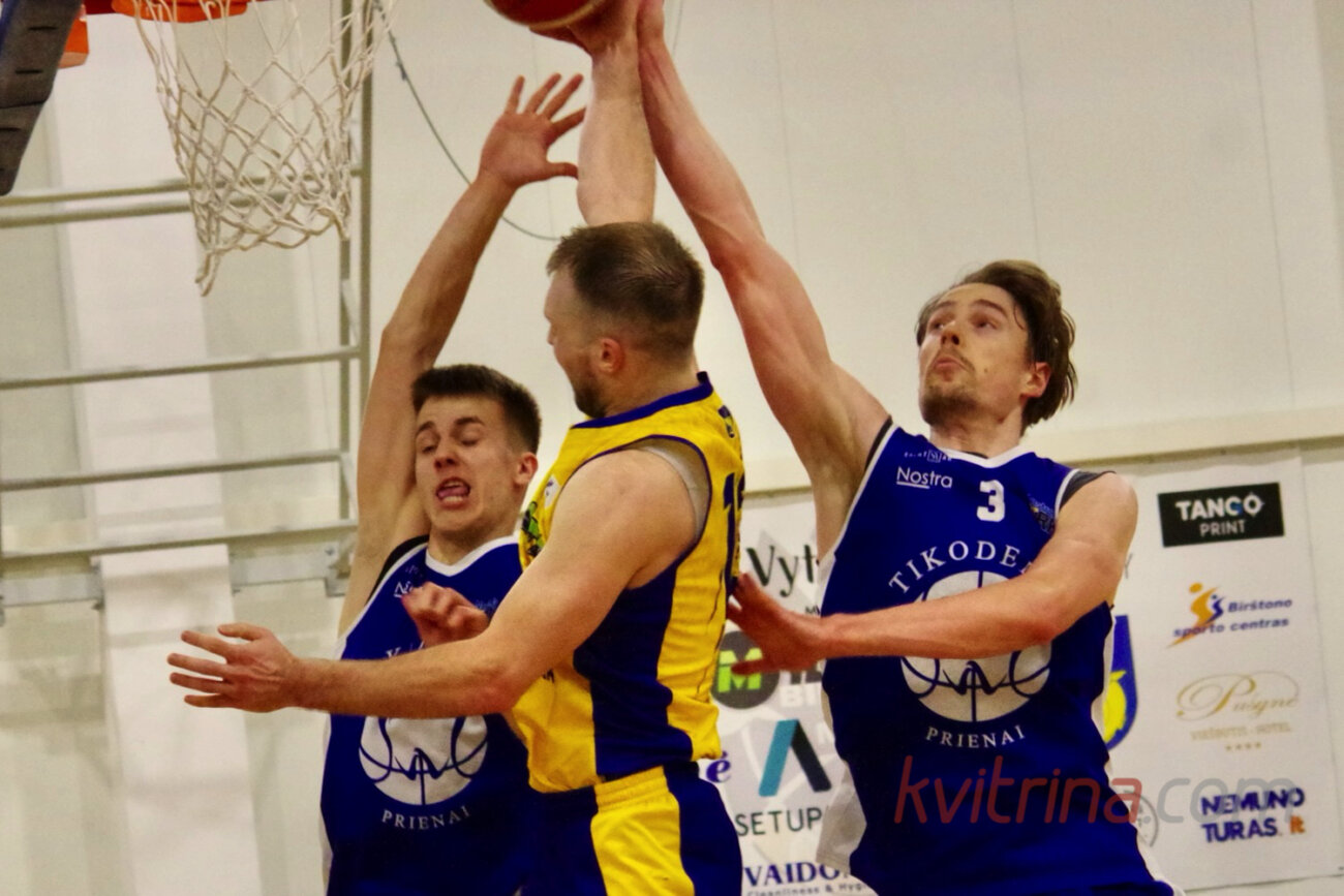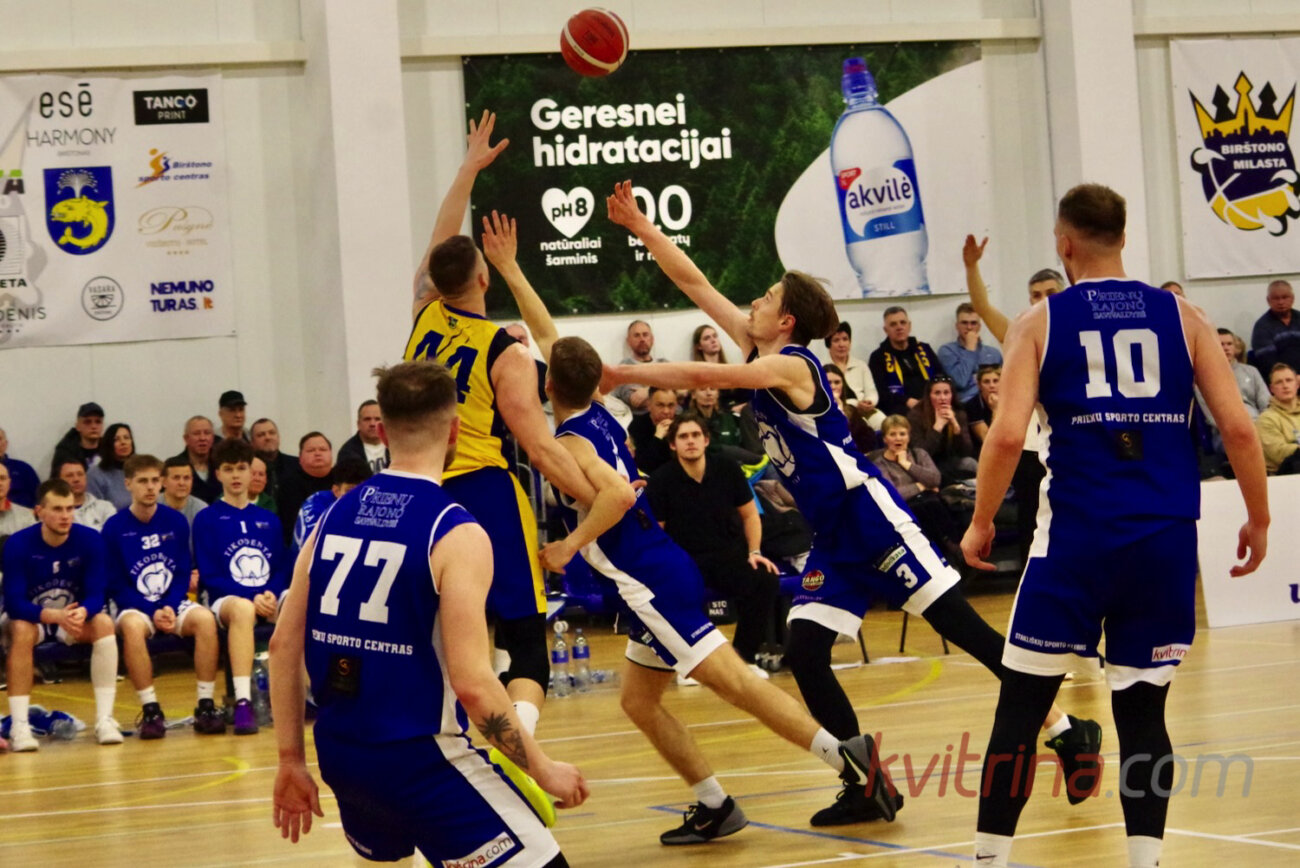 Kovo 7 d. Birštone buvo sužaistos Nostra.lt-RKL čempionato „A“ diviziono rungtynės tarp Birštono „Milastos“ ir Prienų „Tikodentos“. Abiejų komandų sirgaliai užpildė Birštono sporto ir laisvalaikio centrą ir triukšmingai palaikydavo savo komandas. Visas rungtynes vyko įtempta kova dėl kiekvieno taško. Pirmajame kėlinyje svečiai iš Prienų du kartus buvo įgiję 5 taškų pranašumą (3:8, 13:18), bet po jo pavyko išlaikyti tik vieno taško persvarą (22:23). Antrajame kėlinyje vyko apylygė kova ir pirmavo tai viena, tai kita komanda. Jo pabaigoje „Milastos“ krepšininkai vienu metu turėjo 4 taškų pranašumą (38:34). Po dviejų kėlinių komandas skyrė 2 taškai (38:36).