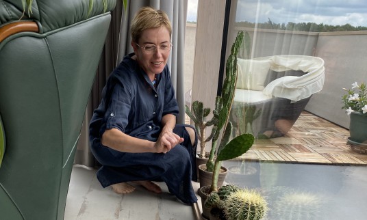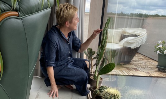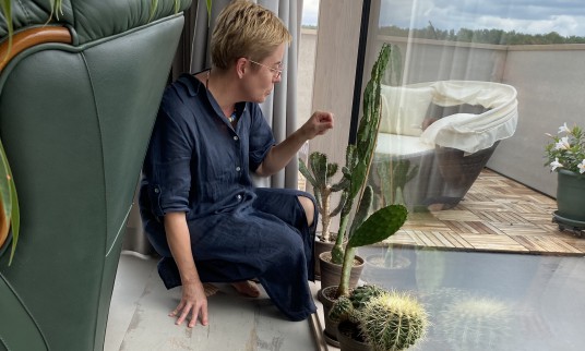 Ant didžiulių langų palangių sutūpę kaktusai, kuriuos menininkė taip pat pamėgo. Jų mokėjimas išgyventi dykumoje jai suteikia impulso, stiprybės. Gal dėl to kai kuriuose darbuose gali pamatyti detales, atspindinčias kaktuso kontūrus.