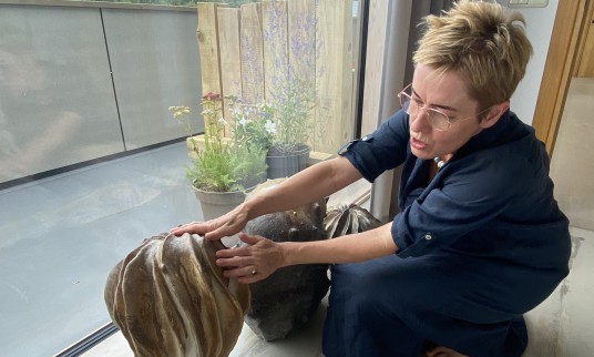 Čia pat puikavosi jau parodai paruošta ekspozicija, kurią taip magėjo paglostyti, apčiuopti to molio galią, suteiktą išbandytos naujos „anagamo“ deginimo technikos. Taip vadinama tradicinėje japoniškoje keramikos degimo krosnyje išgaunami unikalūs dirbiniai. Jie išties tokie!