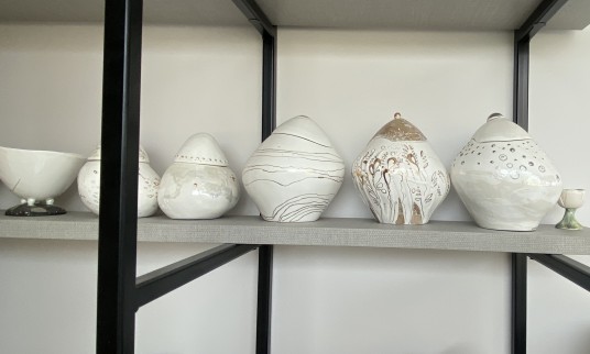 Deginimo krosnis, glazūros pavyzdžių stendas ir mokinių darbai dėžutėse… Viskas telpa, viskas turi savo vietą. Ilona aprodo trapaus porceliano, menininkų vadinamo „baltuoju auksu“, dirbinius, kurie taip pat nenuspėjami, subtilūs ir trapūs.