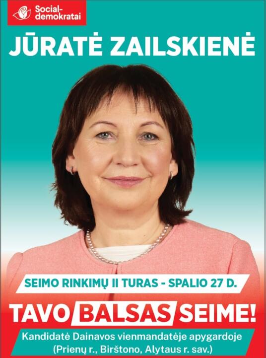Politinė reklama, apmokėta iš Jūratės Zailskienės PK sąskaitos.