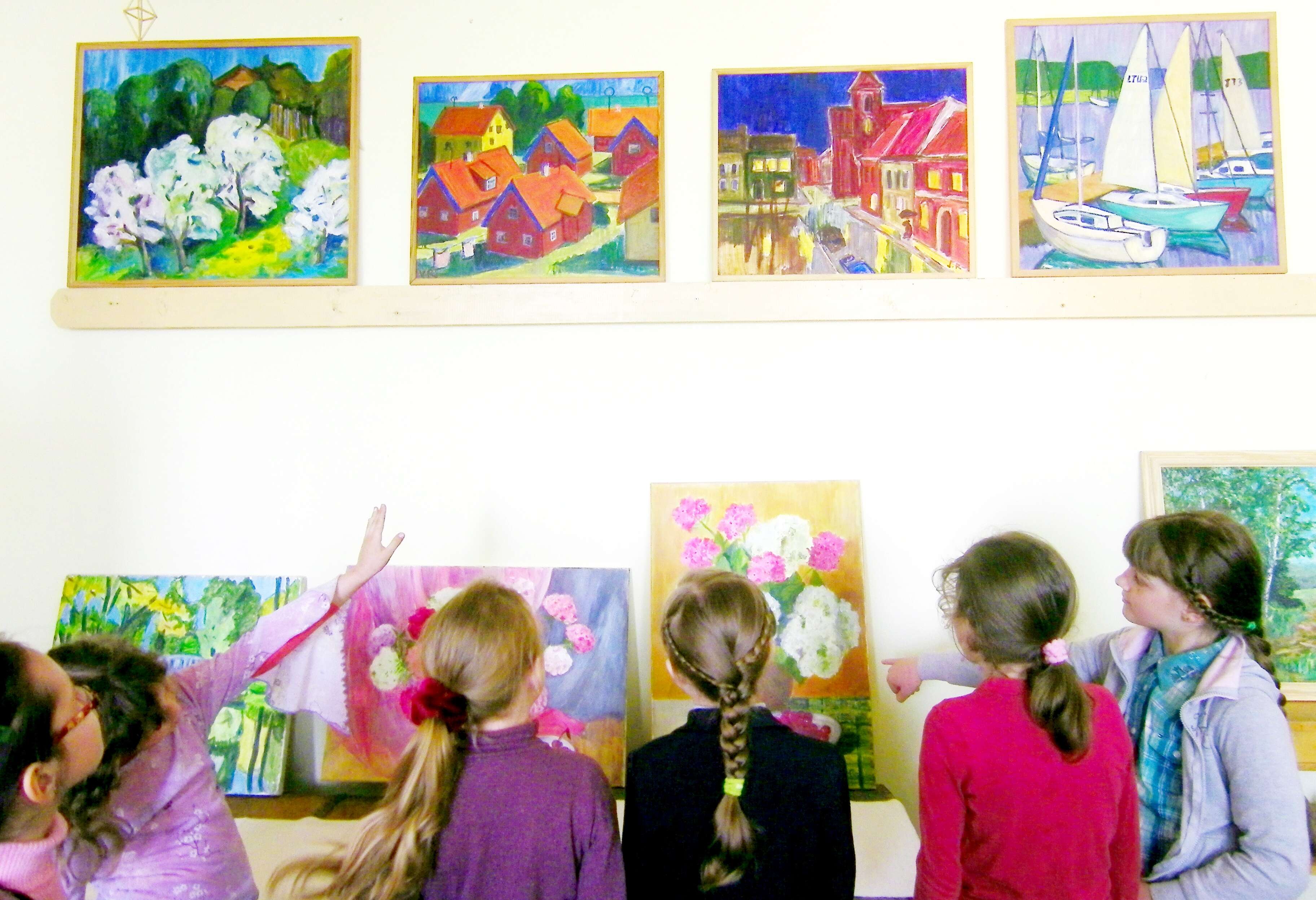 O dabar gėrėjomės ir aptarėme, vedėme dailės pamokas, klasių valandėles, analizuodami net šešių autorių paveikslus. Pradžioje tapytojų pavardes laikėme paslaptyje ir mokiniai turėjo pagal darbų stilių atrinkti, kurie kūriniai priklauso vienam autoriui, kurie kitam. Pasakėme tik tiek, kad jie yra šeši. Mažesnieji klydo daugiau, o vyresnieji smagiai atlikinėjo užduotį, aiškinosi kiekvieno stiliaus savybes.