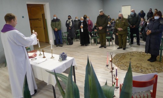 Šv. Mišios vyko Želkūnų bendruomenės salėje, jas aukojo ir prasmingą pamokslą pasakė klebonas L. Visockas.