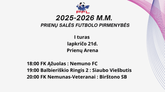Lapkričio 21 d. prasideda 2025/2026 m. sezono PFL salės futbolo pirmenybės, kuriose išsakė norą dalyvauti pareiškė 7 komandos („Stadionas“, FK „Ąžuolas“, Balbieriškio „Ringis-2“, FK „Nemunas-veteranai“, Birštono SB, „Siaubo viešbutis“, „Nemuno FC“).