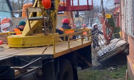 Prienų PGT viršininkas G. Baltrimas pateikė informaciją, jog 3 val. 46 min. buvo gautas pranešimas, kad reikalinga pagalba žmogui, kuris negali išeiti iš namų, nes pasviręs balkonas užblokavo duris. Ugniagesiai iškėlė žmogų, aptvėrė pavojingą zoną STOP juosta. Prie namo liko budėti policijos ekipažas.