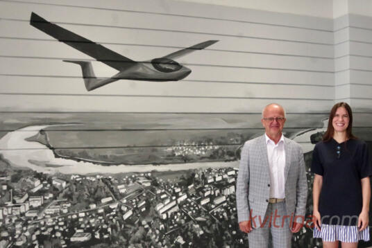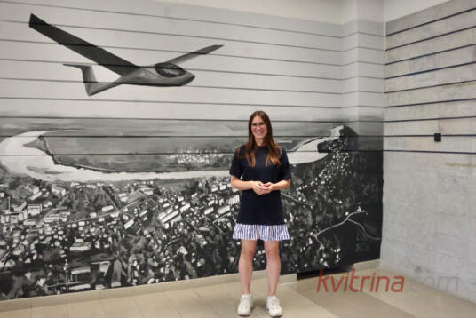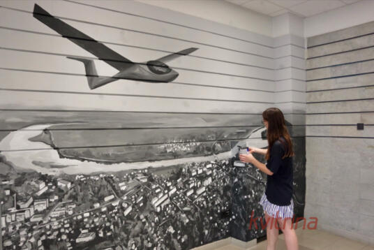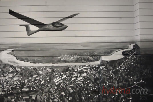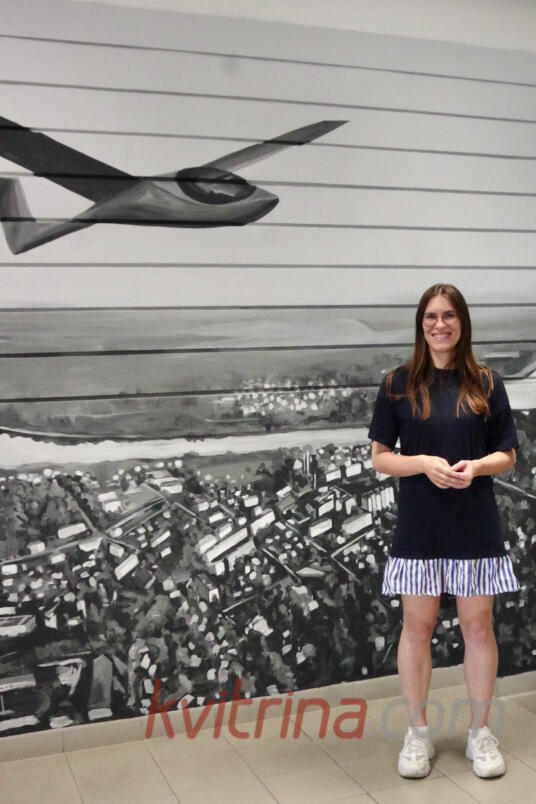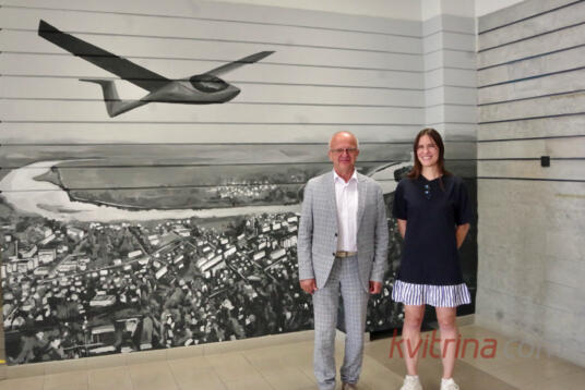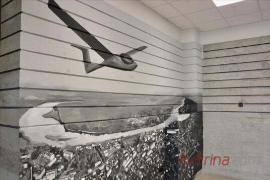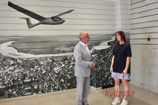 Prienų rajono savivaldybėje atidengta freska „Skrydis virš Prienų“ (Fotoakimirkos)