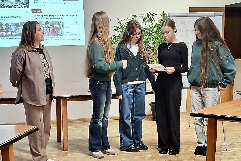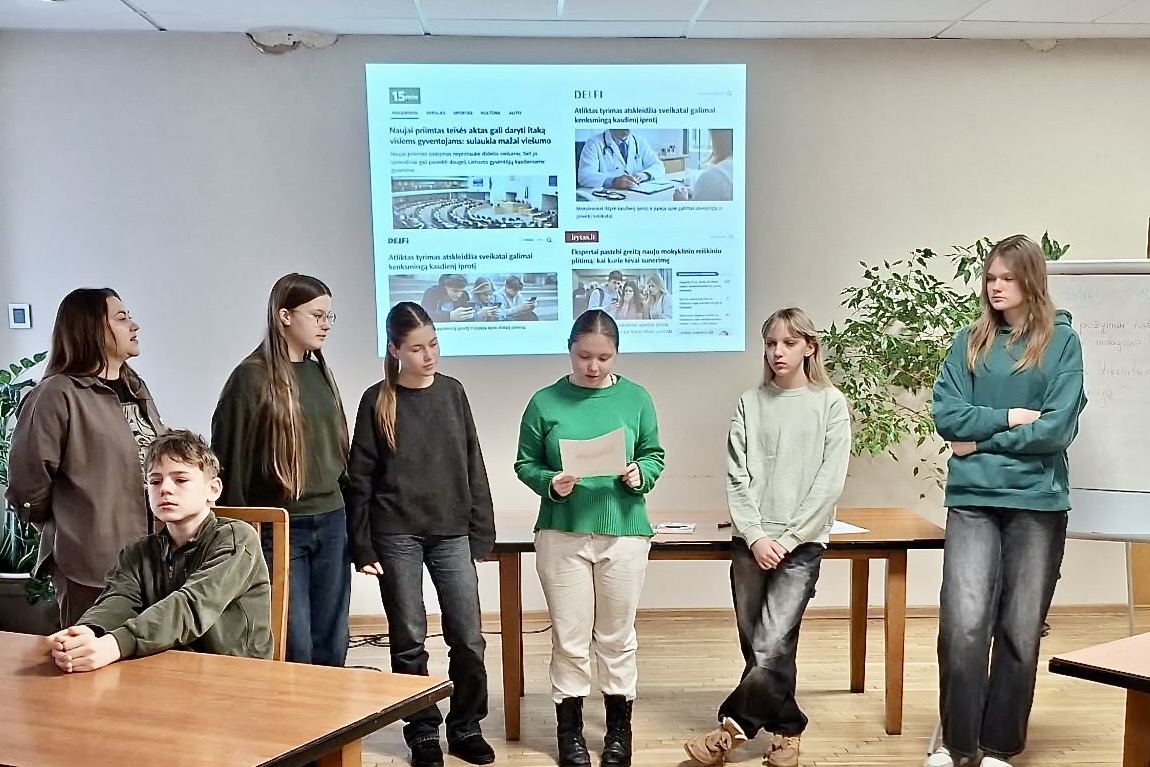 Atviroje jaunimo erdvėje „Prienas“ vyko edukacija, kurioje „Ąžuolo“ progimnazijos septintokai kartu su jaunimo erdvės darbuotoja Žaneta Židoniene pasinėrė į medijų pasaulį ir tapo savotiškais detektyvais, kurie analizavo skandalingas antraštes, bandė atpažinti melagienas. Pasak Ž. Židonienės, diskusijos metu buvo bandoma įsigilinti, kaip skambūs žodžiai antraštėse gali paveikti emocijas, sukelti sumaištį ar pyktį.