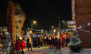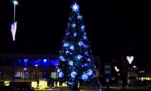 Spaudžiant šaltukui Prienai įžiebė gyventojų užaugintą kalėdinę eglutę