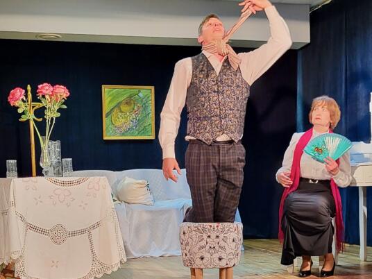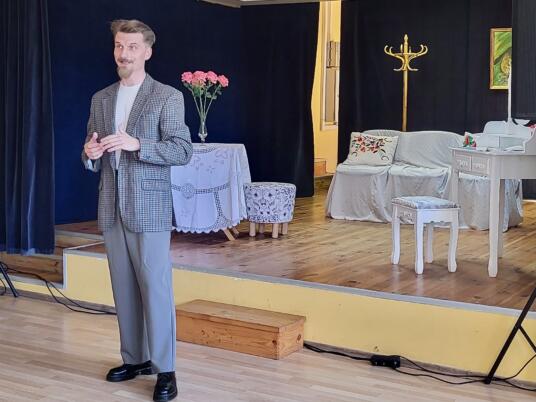 Saulėtą sekmadienio rytą teatro mylėtojai skubėjo į Birštono seniūnijos salę, kur vyko Birštono kultūros centro projekto „Teatro kolektyvų kultūrinių gebėjimų ir kompetencijų tobulinimas bei vaidybos meno įgūdžių stiprinimas“ mokymai ir buvo rodomas spektaklis „Dėdė atvažiavo”.