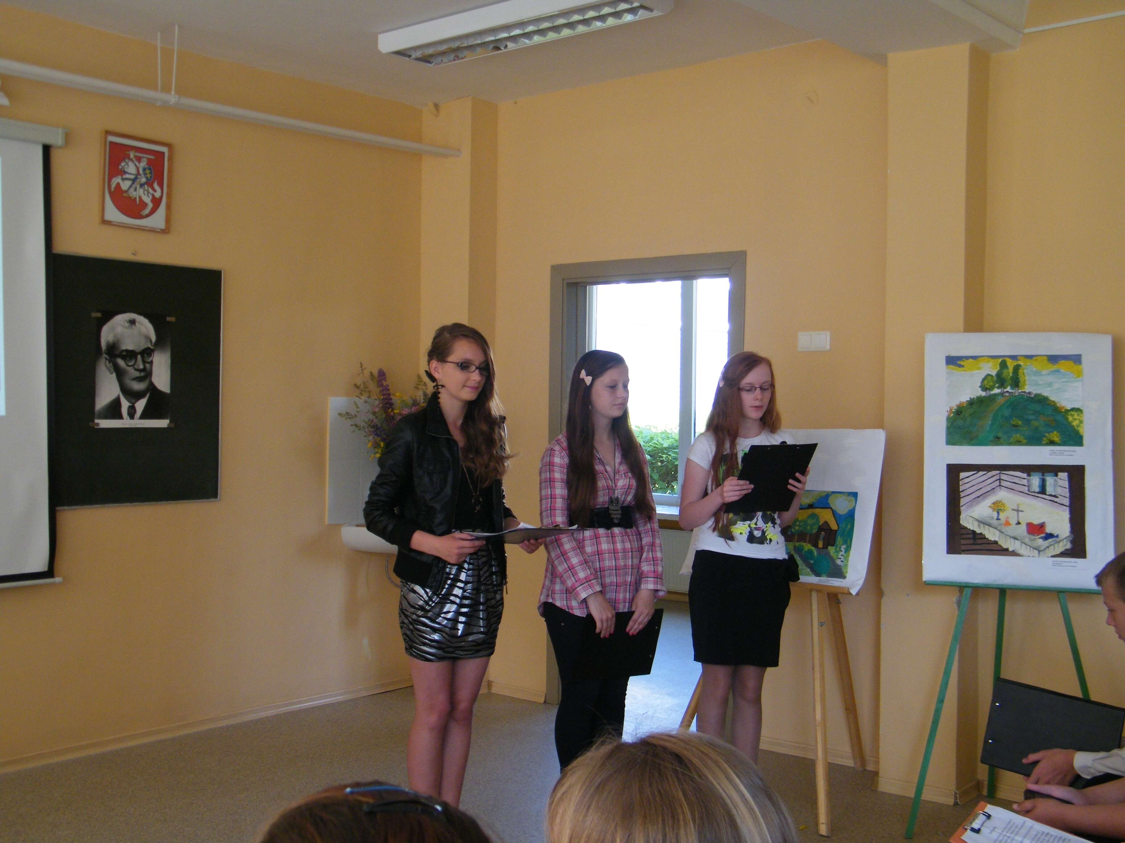 Ruošdamiesi pristatyti projektą, mokiniai pradėjo jaudintis, kad bendraamžiai, naivūs, nesmalsūs, jų nesupras. Suprato. Dėl to labai džiaugiamės. Šventės metu persipynė poeto gyvenimo faktai, eilėraščiai, romano „Altorių šešėly“ ištraukos, mokinių piešti tėviškės vaizdai.