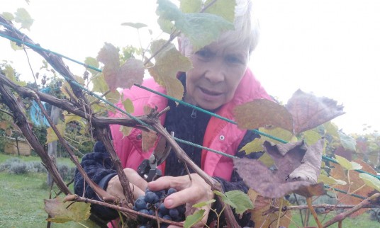 Taip buvo pasodinti 32 vynuogių krūmeliai trijose eilėse. Sodinukai augo, tačiau vis reikalavo priežiūros. Tręšimas, žemės purenimas. Tuo užsiimdavo sūnus, ir štai, pirmasis derlius! Keletą metų uogų užaugdavo tik pavalgyti, tačiau tikėjimas, kad kitais metais derlius bus vis didesnis, kaip sakoma, „vežė“. Po dešimties metų uogų užderėjo daug, tačiau tuomet negailestingai praūžęs škvalas visus vynuogienojus sunaikino. Tačiau, matyt, vynuogės pamilo šiuos žmones. Jos iš šaknų atgijo ir vėl pradėjo vešėti. Ir štai, po beveik dešimties metų vėl aplipo mėlynomis kekėmis uogų. Iš pradžių buvo gaminamos sultys, tačiau, kaip Vida pastebėjo, daugelis giminaičių niekaip negalėjo priprasti prie sveikų, be visokių E, gėrimų. Jie su malonumu gerdavo parduotuvėse nusipirktų, tačiau, pasak jos, niekada nepriekaištavo dėl šios veiklos, nes tai buvo jų pasirinkimas.
